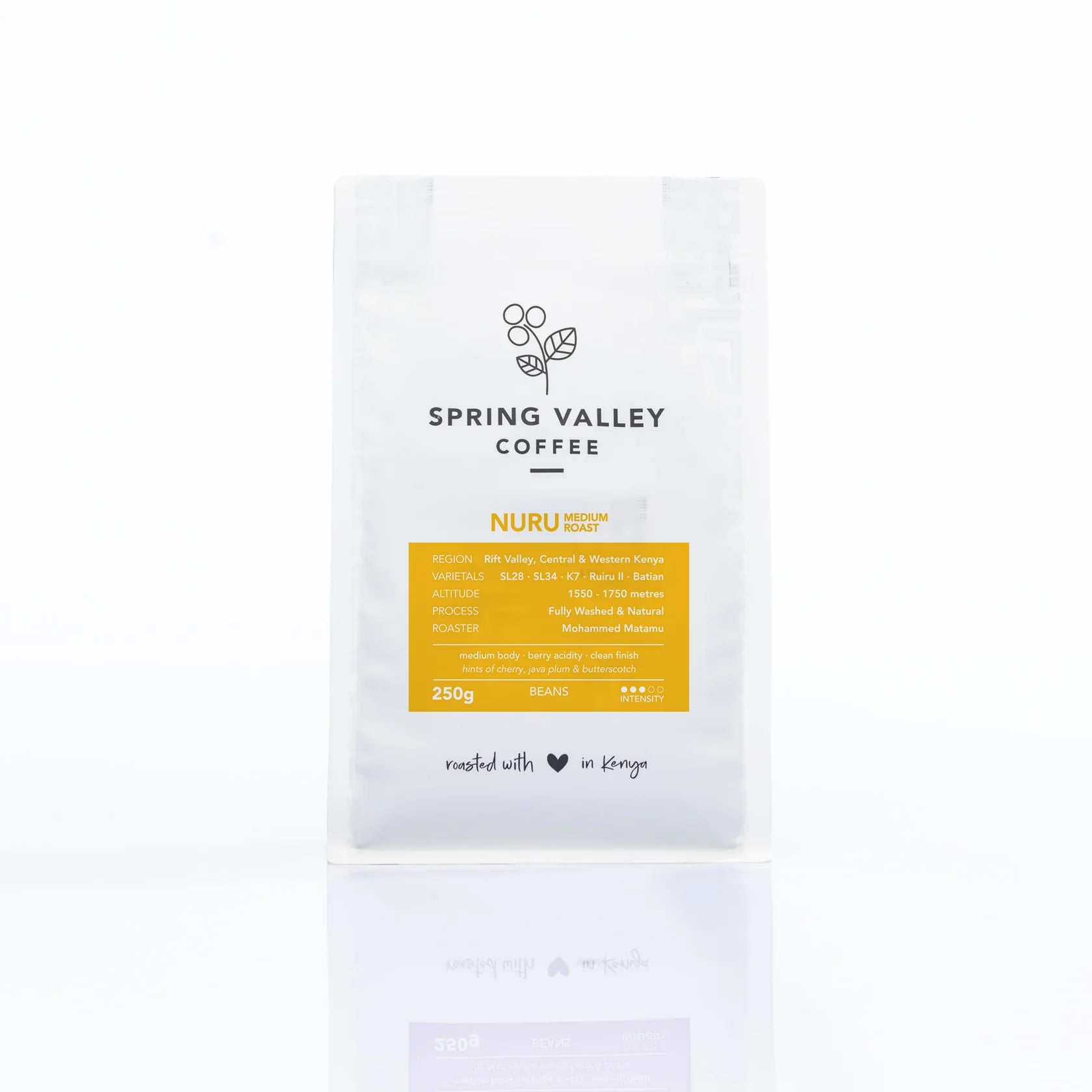 Diese saisonale Edition bietet vielschichtige Komplexität mit tollen Geschmacksnoten Dynamisch und dennoch ausgewogen, ist Nuru eine wahre Hommage an kenianisches Kaffeehandwerk.